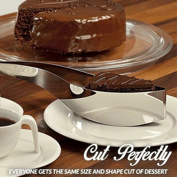 How to cut a cake into even slices? To use the Cake Slicer, simply slice it by pushing down from the top of the cake, squeeze ever so slightly to grip the slice, and transfer the piece of cake to your plate with ease. It all just takes one swift motion, with no need to balance it on a fork or knife! No more kids complaining that someone got a bigger piece than them and no more people eyeballing each other’s slice at the table. No more kids complaining that someone got a bigger piece than them. Now everyone gets the same size and shape cut of dessert. One-hand design serves more efficiently and with less trouble than using a slicer and a fork. This cake slicer is easier to use than traditional cake servers. It does the cutting and the serving all at once! Made by high-quality stainless steel or ABS plastic which is food-grade materials. Material: Stainless steel; Size: 9.8*1.7*1.5 inch; Color: Silver. Package Includes:1 * Magic Cake Slicer.