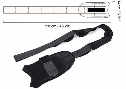 A unique stretching aid that assists in the relaxation of the shoulders, back and thighs have a stretch massage effect, even for users with limited range of motion. It's ideal for people with limited flexibility or range of motion. Made of a comfortable poly laminate and webbing, this unique stretching aid features multiple strap loops for personal control of each stretch. While aiding in physical mobility and flexibility, its design encompasses the foot allowing for a comfortable stretch. The unique design alleviates stress on the heel, permits relaxed breathing, and affords superior dorsiflexion of the toes. Foot Stretch strap provides additional stability during unassisted stretches and poses, prevents injury, and facilitates gradual and gentle stretches that protect your muscles and make you more and more flexible each day. This foot stretcher easy, sturdy, well made, light, portable, foldable. It can also be used as a yoga stretching belt to help you build a slim figure. It can be worn in three unique orientations to accommodate different stretching positions. Choose from the three configurations to target separate muscle groups. The foot stretcher fit your various exercise needs, suit for yoga, ballet, pilates, workout, athletic teams, and relaxing & flexibility training stretching strap. Assists in the treatment of plantar fasciitis, heel spurs, calf, thigh, hip, and low back strains and injuries. Materlal: Polyester cotton; ltem rype: Braces & Supports; color: Black; Length: 115cm; Footpad: 24*14cm; Each loop: 17*23cm.