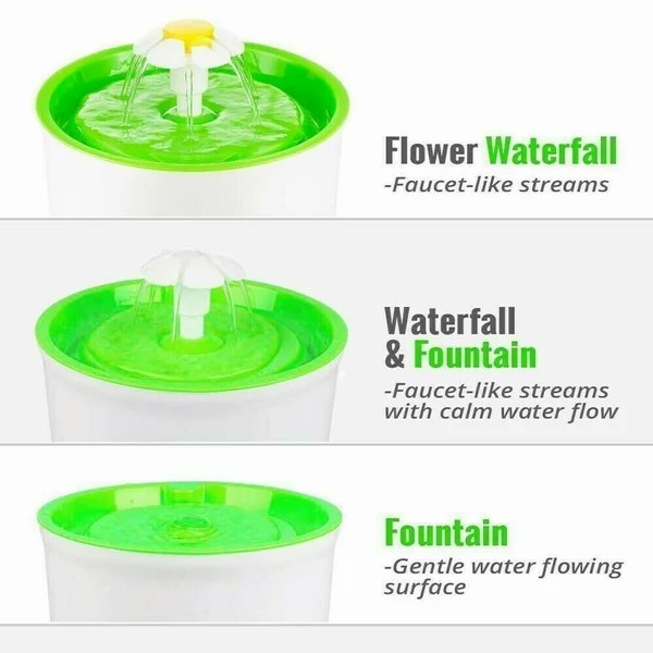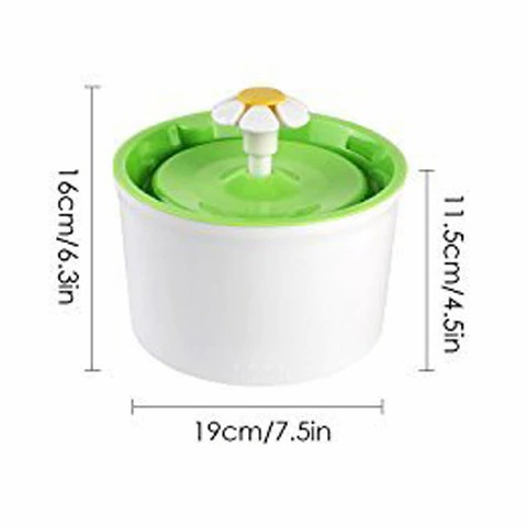Unique Design:?Cat Fountain allows 3 different water flow settings for picky drinkers and offers maximum oxygenation for fresher, better tasting water. High Quality Material:?BPA Free plastic, through food-grade certification. Easy to disassemble and clean, with detailed instructions manual. Water Capacity:?Pet water fountain with 1.6L/56 ounces capacity, suitable for cats and birds, small and middle size dogs. Keep Water Fresh:?Pet water dispenser includes a replaceable carbon water filter that removes bad tastes and odors. Quiet & Efficient Pump:?This pump runs super quiet, with 2w low power consumption. Can run for 10,000 hours and can run dry for 48 hours. Material:?ABS + PP + electronic component. Water Storage Capacity:?1.6 L (56 OZ); Water Pump flow:?32 GPH (120L / H); Water Pump Power:?2W ( measured 3.5W ) ; Operation voltage:?AC110V/60HZ; Output:?AC12V-300mA; Net Weight:?1.5lb/680g;Size:as the picture shows; PACKAGE INCLUDED: 1x Automatic Pet Water Fountain; 1x Activated Carbon Filter Cotton; 1x AC Pump; 1x AC Adapter.