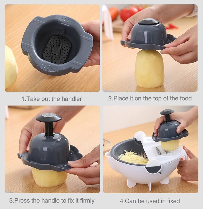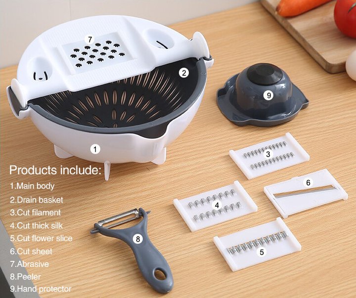All-in-one Design: Use a variety of different blades to combine the function of the drainer with the functions of shredding, slicing, and grinding fruits and vegetables. Ultra Sharp & Safe: Made of highest quality stainless steel and razor-sharp blades with anti-cut design. You can cut and peel smoothly without injury. Large Capacity: Able to deal with a batch of vegetables with capacity up to 2000ml. Cut Thick Wire: For peeling any fruit/vegetable like carrots into thin/ thick strips. Shredded: For slicing cucumbers, potatoes, etc. Ground Garlic: For grating ginger, garlic, etc. without chopping which is easy and labor-saving. slice:Easily slice, save time and effort. Crinkle Cutter: For making delicious potato chips at home with ease. Sharp peeling knife: easy peeling. Built-in Drainage: Convenient to cut vegetables and clean them directly through a drainage device by rotating the cutter. It also doubles as a container to store fresh vegetables after draining all water off. Detachable Drainer: The drainer can also be freely removed for easy use.