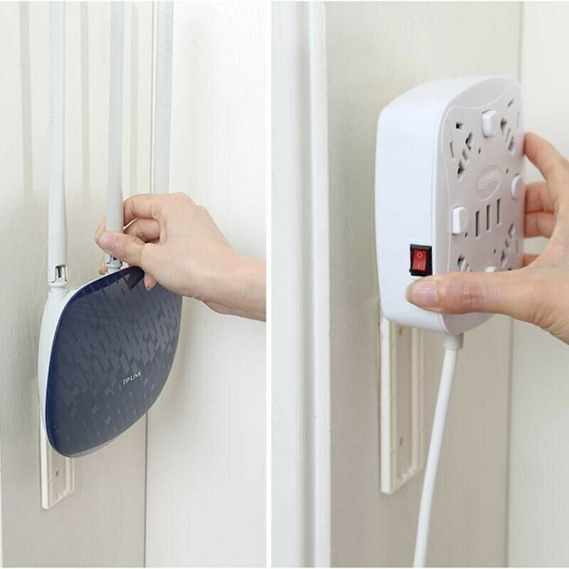 Self Adhesive power strip holders, no extra screws & drilling, protect the wall! Applicable to all kinds of plug boards, routers, remote controllers and so on. Seamless sticking, firm stickiness. ABS material, thick and durable, structural stability. Separable and Reusable- The chute design & simplest bracket stand for WIFI router are convenient for you to fix and separate, anytime, anywhere. Applicable Surface- The wall-mounted fixator can work on smooth ceramic tile, glass, mirror, flat stainless steel, acrylic, plastic, laminate base and more, Do not try wallpaper, putty wall, brick wall, paint wall. CAN WITHSTAND 2KG WEIGHT. Size: 10.2x4x0.7cm.